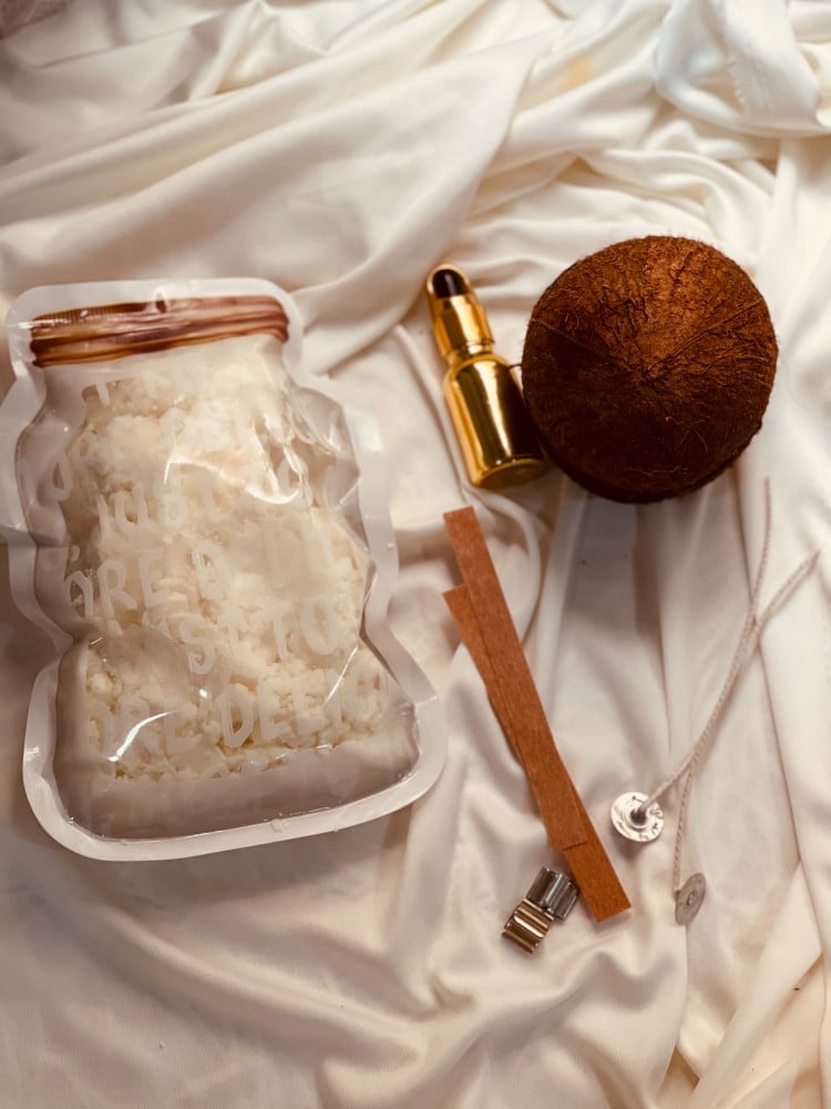 صندوق اصنع شمعتك بنفسك من الممتع ان تصنع شمعتك بنفسك بقالب جوز الهند الطبيعي.