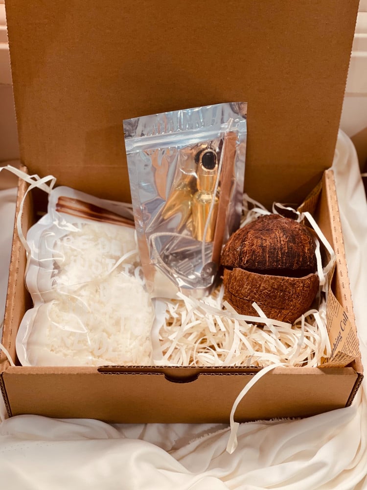يتم اضافة حبتين في البوكس وذلك لان جوز الهند الطبيعي يكون متضرر بدون علمنا.